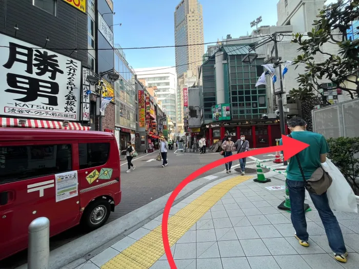 曲がると直ぐ目の前に見える建物がBUZZ渋谷MARKCITYになります。