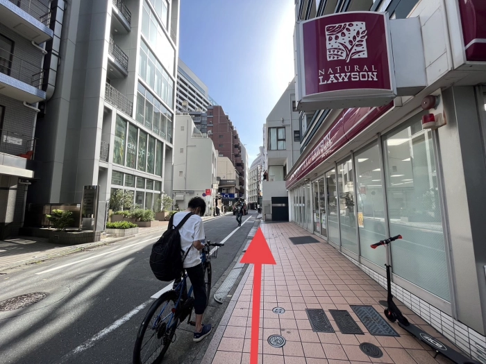NATURAL LAWSONまで出たら右に曲がり、真っすぐ進む。