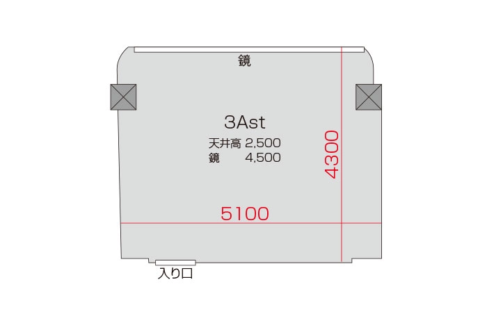 広さ 21.0㎡ 天井高 2.5m 鏡 4.5m