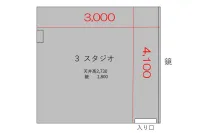 広さ 18.5㎡ 天井高 2.45m 鏡 3.6m