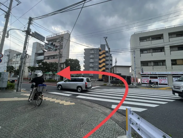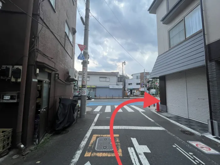 渡ったら更に右手の横断歩道を渡る。