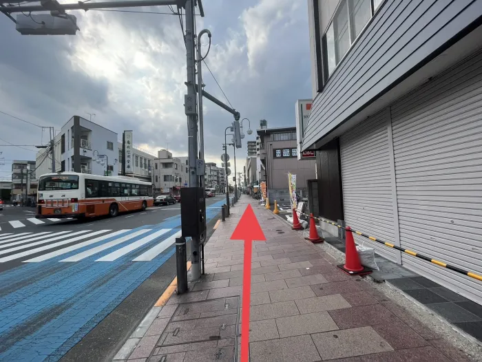 竹の塚西口駅前商店街の門をくぐってそのまま道なりに進む。