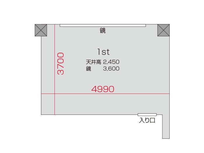 広さ 18.5㎡ 天井高 2.45m 鏡 3.6m