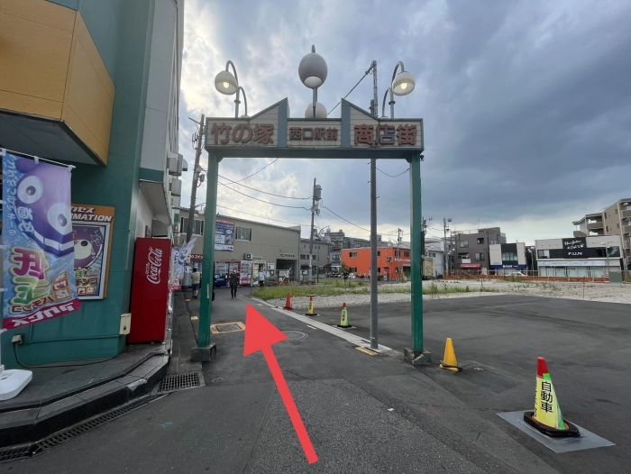 竹の塚西口駅前商店街の門をくぐってそのまま道なりに進む。