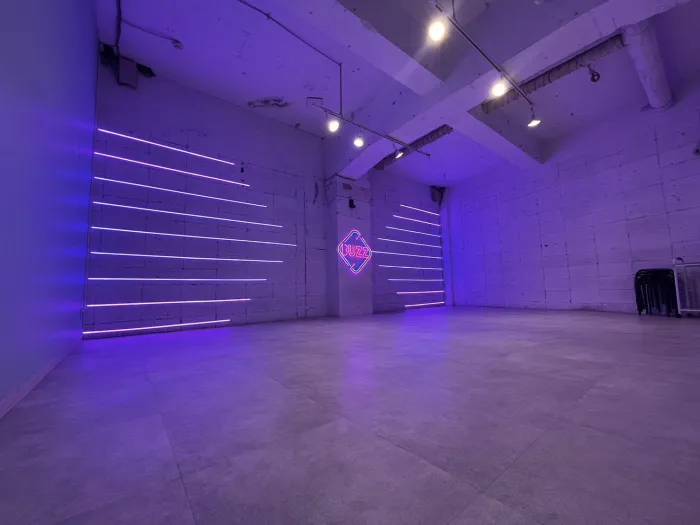 LEDネオンライトが壁に掛けられているので撮影などにも適しています。