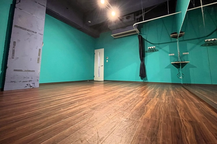 正方形に近い形のスタジオ。個人レッスンや少人数でのリハーサルに最適です。