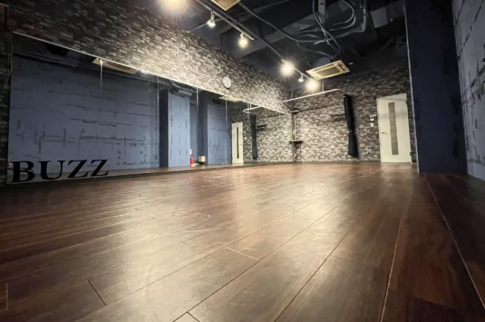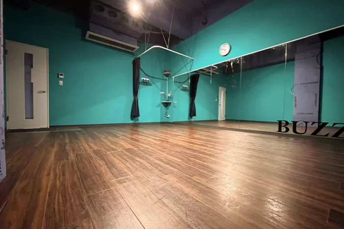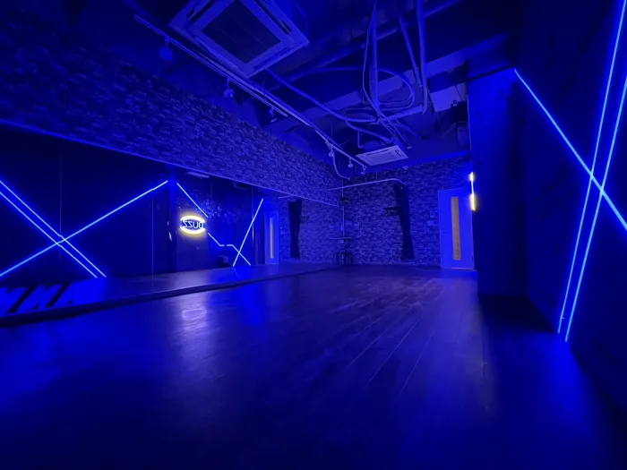 【ネオンサイン導入】鏡面8mの横に広めのスタジオ。レッスンや個人連どちらにも最適です。