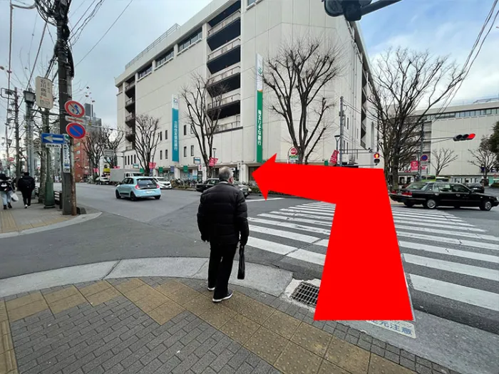 横断歩道をCORSO側へ渡り左折。