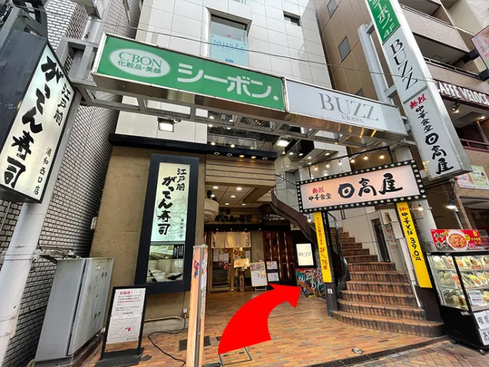 歩いて1分ほどで左手にSTUDIO BUZZ浦和があります。 地下へ降りる階段からお越しください。