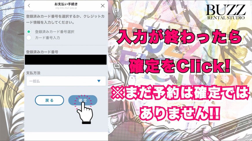 お支払い方法に関する情報を入力してください。最後に【確定】をタップ。