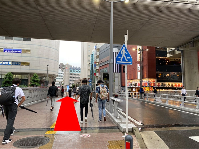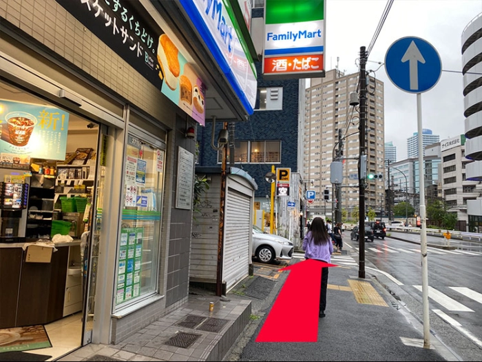 まっすぐ進むと信号が見えますので渡って右に曲がります。