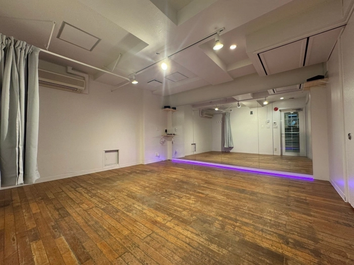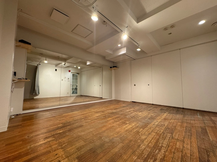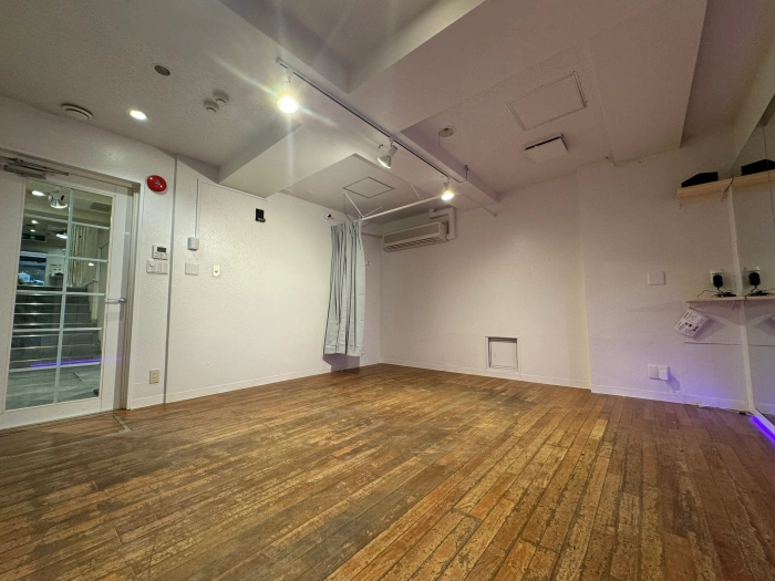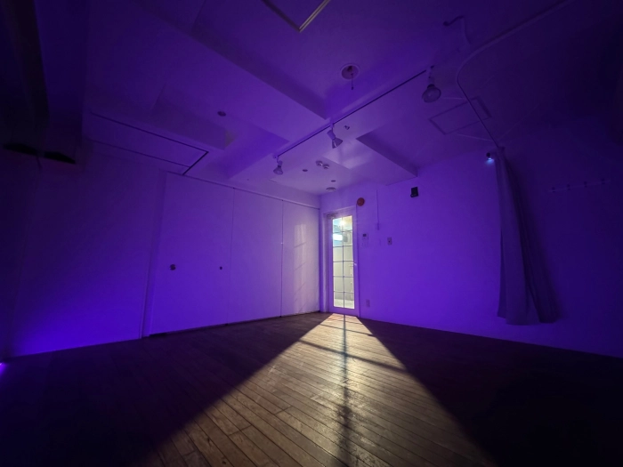 スタジオの入口前で靴を脱いでいただき、電気を点けてお使いください。受付での手続きなどは一切ございません。